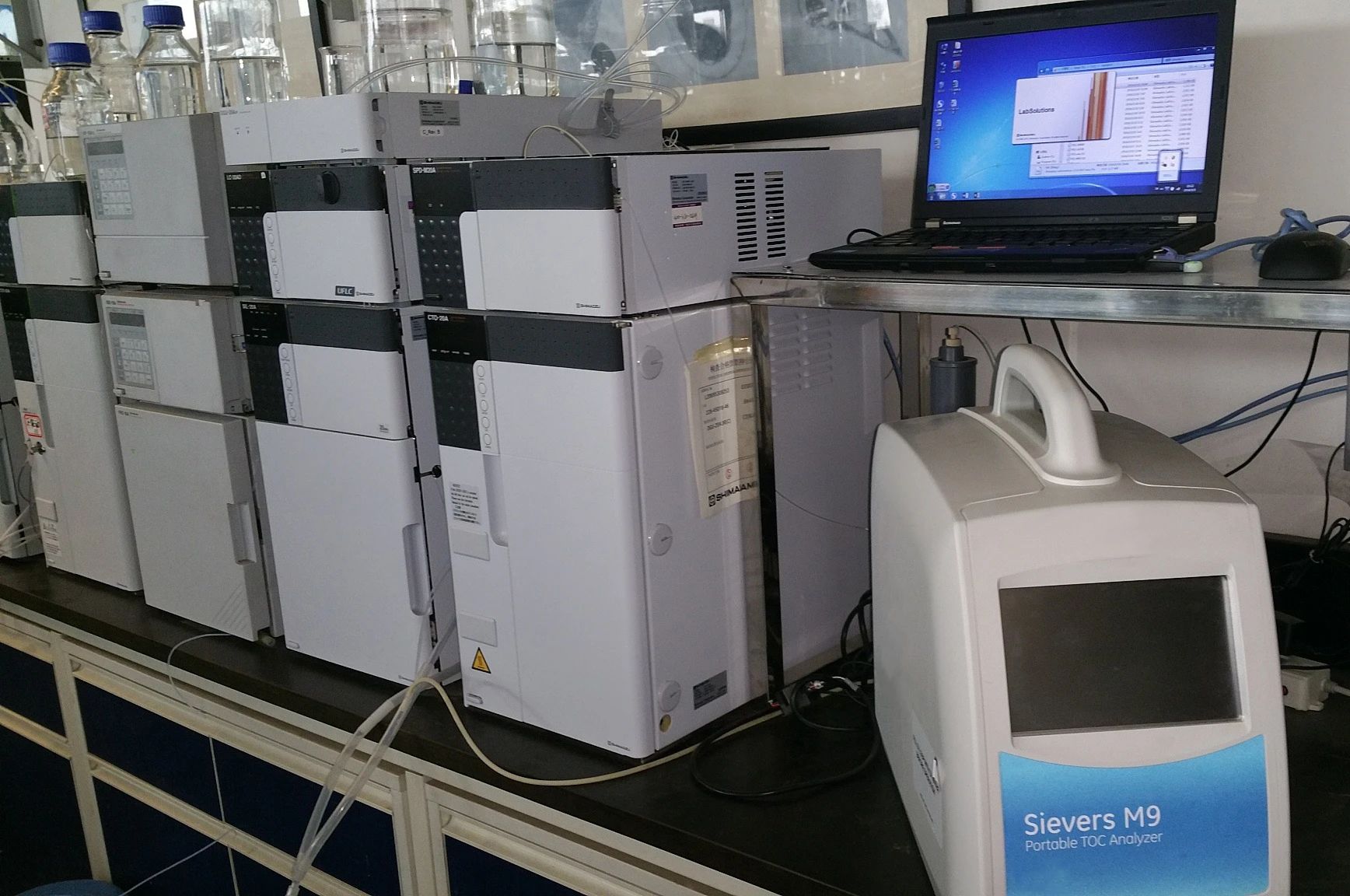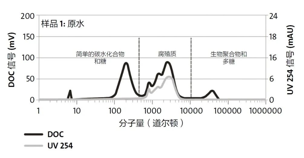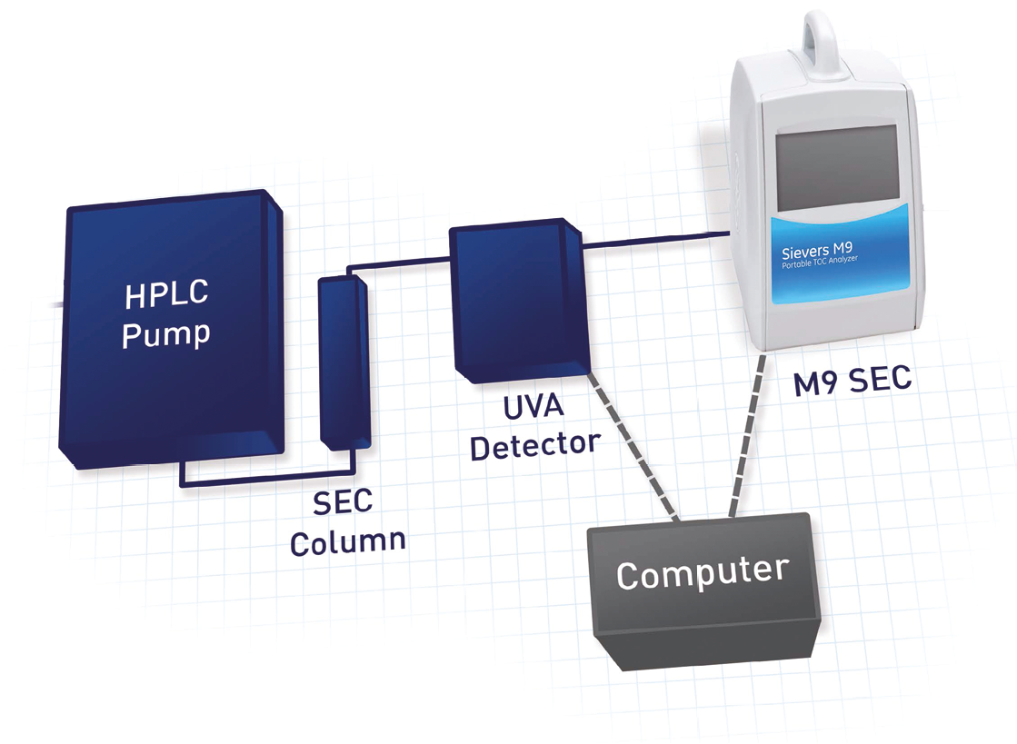 The post 液相色譜LC與TOC聯(lián)用: Sievers M9 SEC檢測器 first appeared on 上海島通應用科技有限公司.]]>Sievers??M9 SEC是一款特殊改裝的Sievers M9總有機碳TOC分析儀,設計用作溶解有機碳(Dissolved Organic Carbon,DOC)檢測器,連接到高性能體積排除色譜系統(tǒng)(Size Exclusion Chromatography,SEC)。背景介紹2002年的《環(huán)境科學技術(shù)雜志》文章(Her et al., 2002年)首次描述M9 SEC,從此研究人員開始廣泛采用M9 SEC來分離和定量溶解在水中的各種天然有機物(NOM)的分子量組分。由于某些分子量的有機物可能會污染膜,在氯化飲用水之后極易轉(zhuǎn)變?yōu)槿u甲烷(THM),并且干擾微電子制造過程,或加快鍋爐腐蝕,因此人們可以通過量化這些有機物的組分來優(yōu)化各種水處理工藝。一些有機物分子在UV光譜段沒有吸收,它們不會被檢測。這些分子當中的一些在水處理工藝中非常重要,因為它們會造成問題,如多聚糖olysaacharide等。如下圖所示,TOC檢測器捕捉到更多的組分。M9 SEC通過捕獲所有有機碳組分,而不僅僅是具有UV信號的組分,增強了HPLC SEC UV分析??梢愿玫亓私鈽悠诽卣?,有助于作出工藝決策。TOC作為LC檢測器的優(yōu)勢: